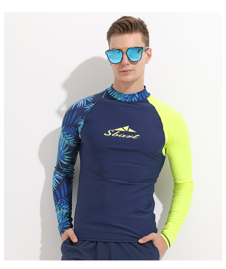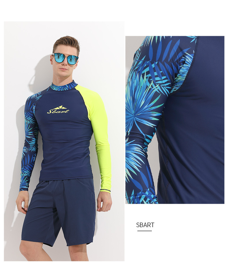 Sbart Men's Long Sleeve Rash Vest Sublimation Printed Rashie UPF50+ Rashguard Chlorine Resistant Surfing Rash Guard