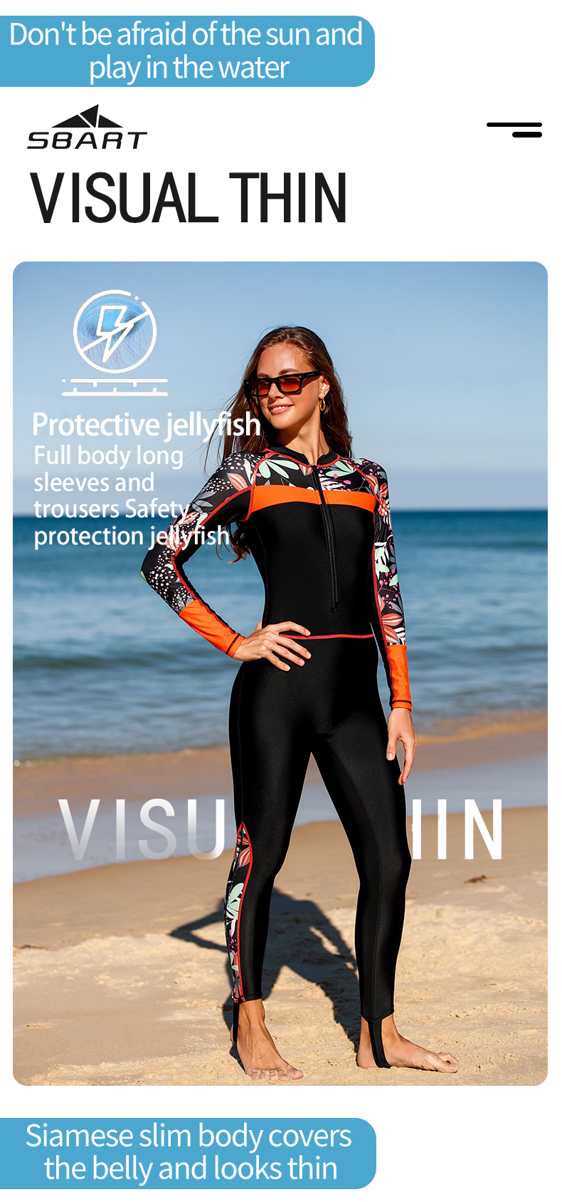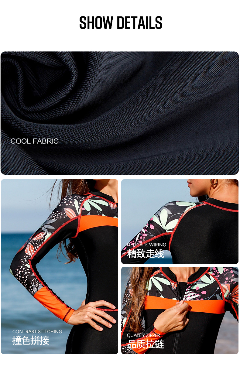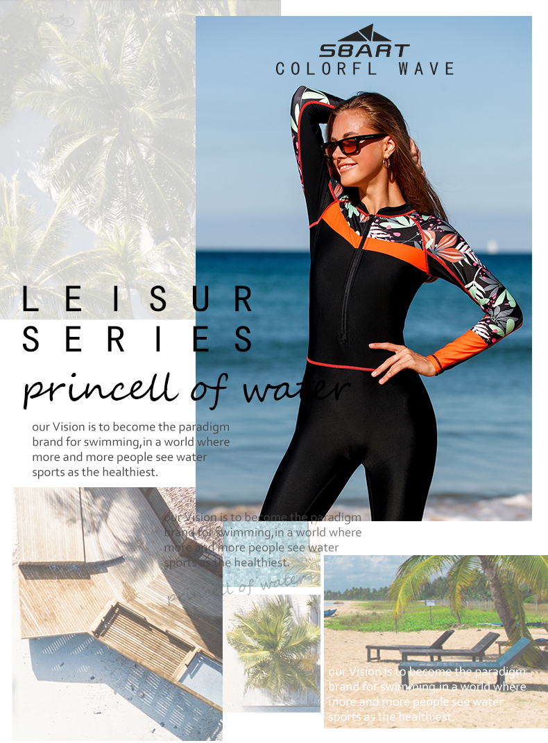 sbart long sleeve swimsuits for women quick drying anti-uv sun protection sublimation printing beach wear