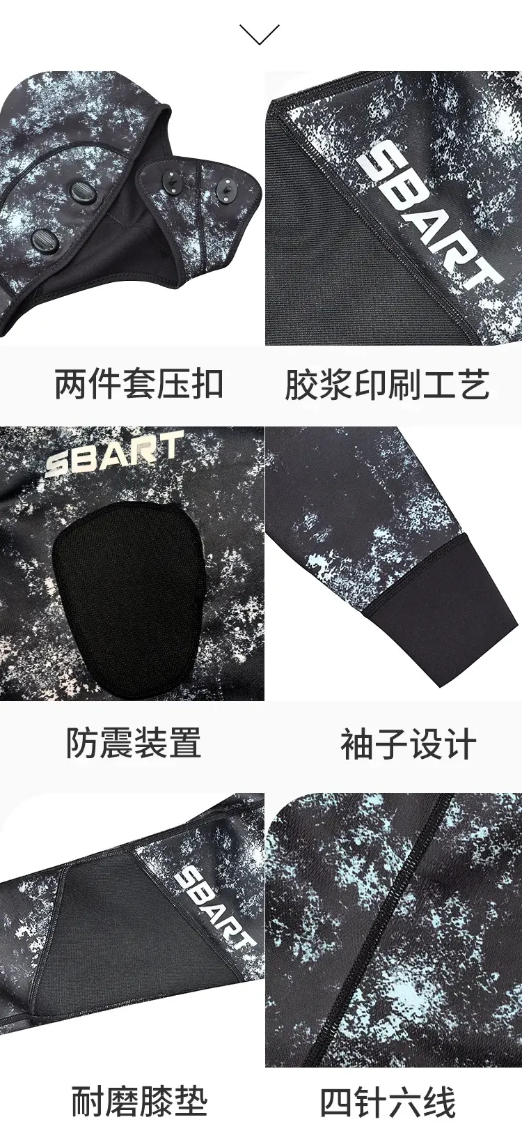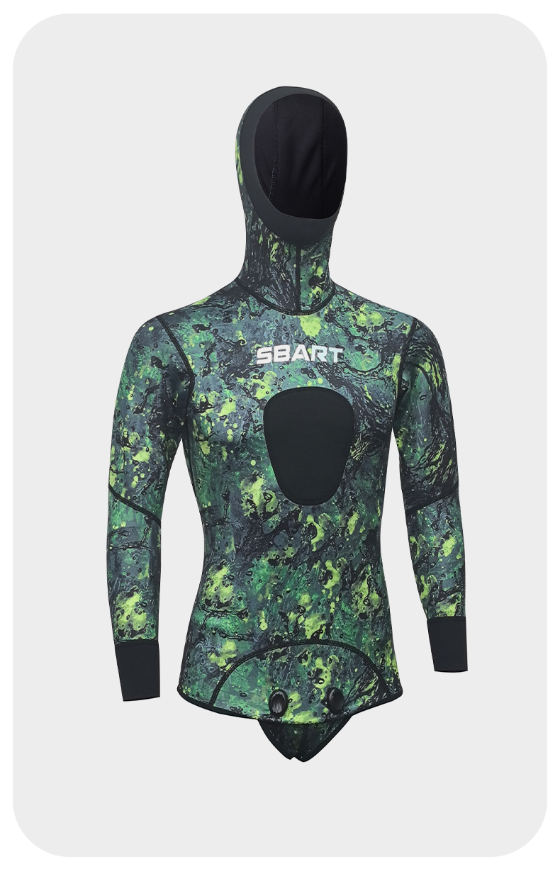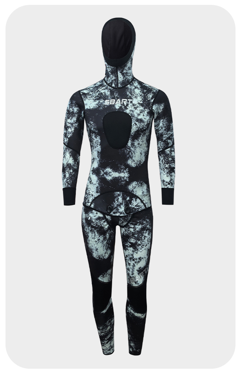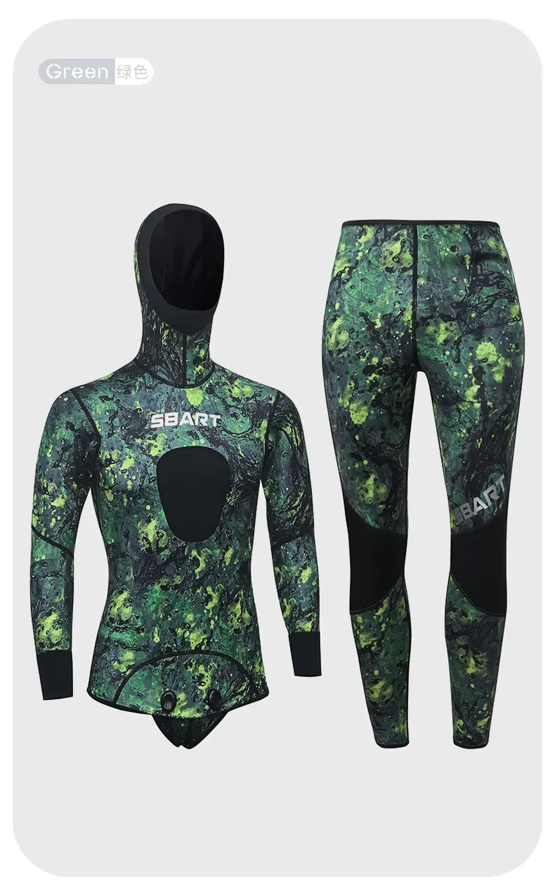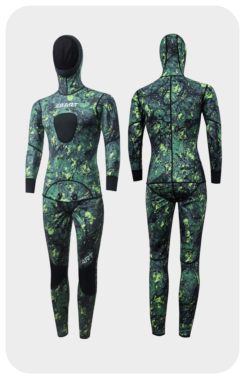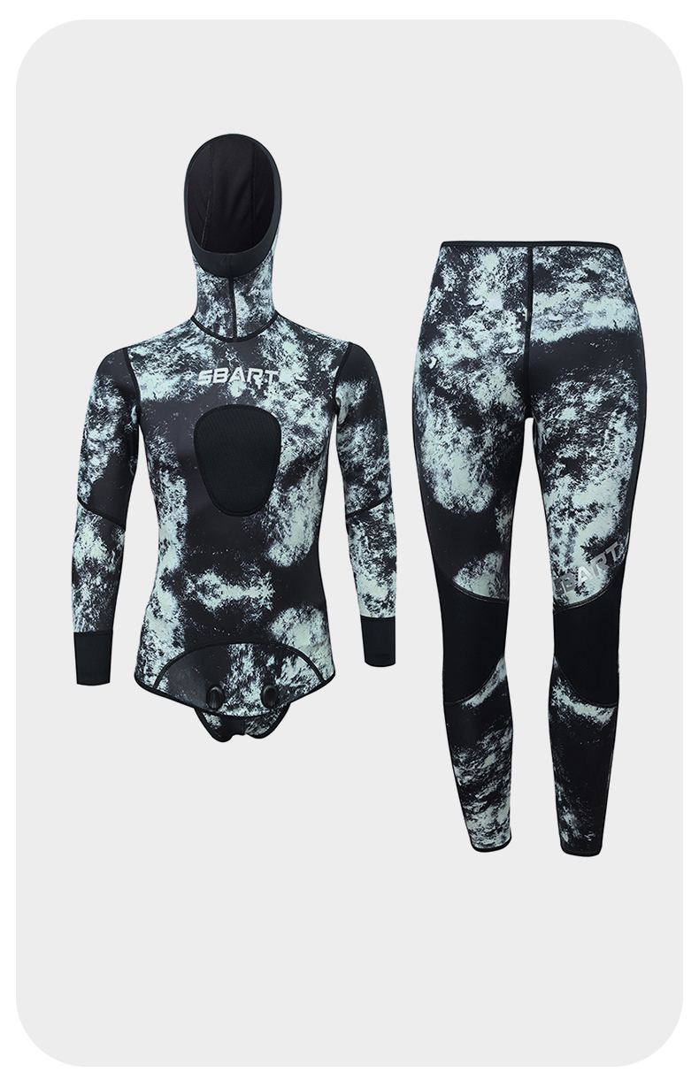 1.5MM Camouflage Two Piece Wetsuit for Spearfishing Freediving Lightweight Neoprene Jacket and Pants Set for Warm Water Diving