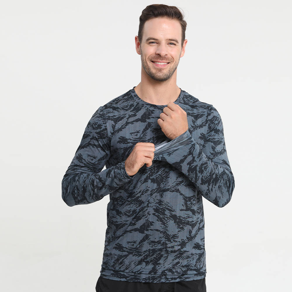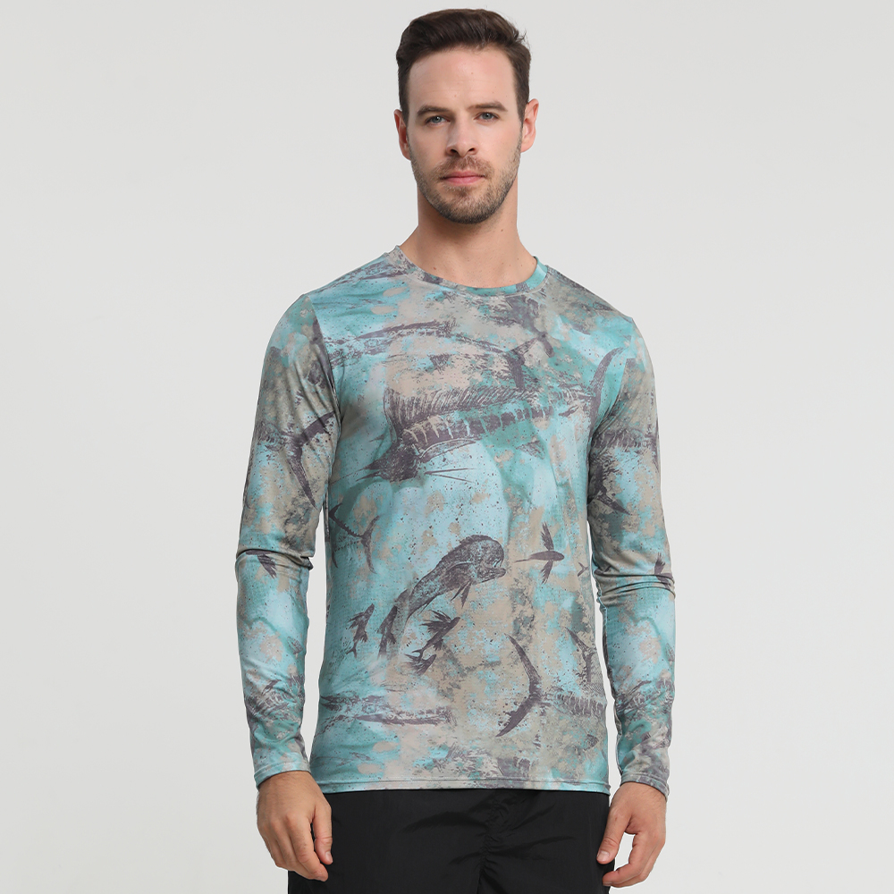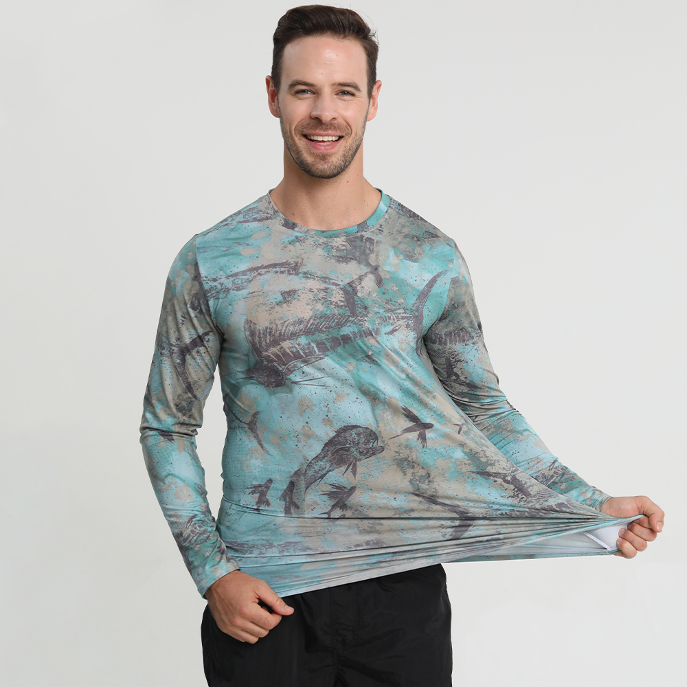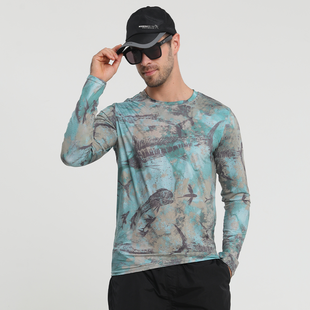 Men’s Camo Long Sleeve Fishing Shirt UPF50+ Quick Dry Breathable Outdoor Performance T-Shirt for Angling Hunting Kayaking Hiking