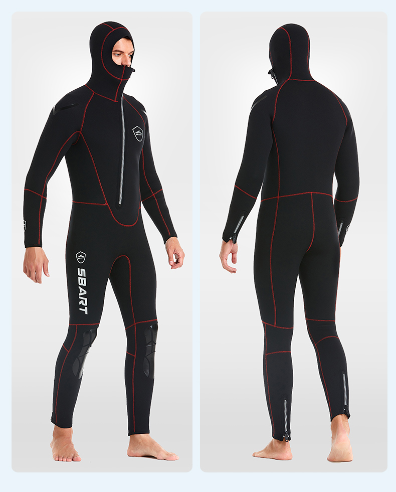 SBART 5MM diving suit thick warm swimsuit hooded knee pads deep diving fish hunting suit winter swimming equipment wetsuit