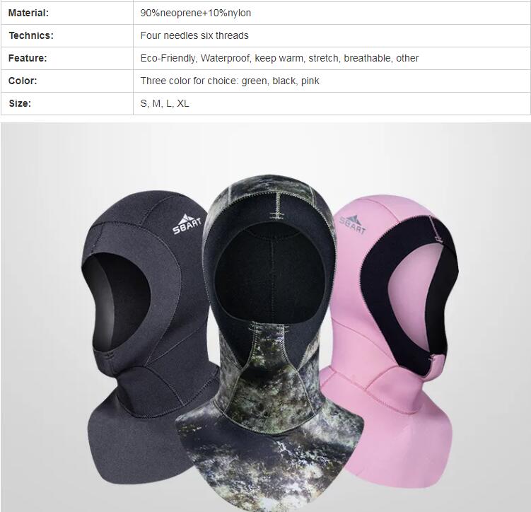 SBART 3mm neoprene diving hood wetsuit hood coldproof wetsuit hat cap