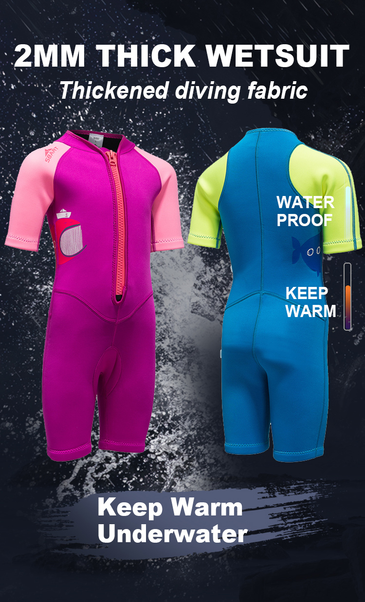 SBART Children Wetsuit 2mm Neoprene Diving Suit Upf50+ Short Sleeve Wet Suit Keep Warm Soft Wetsuit For Kid Water Sport