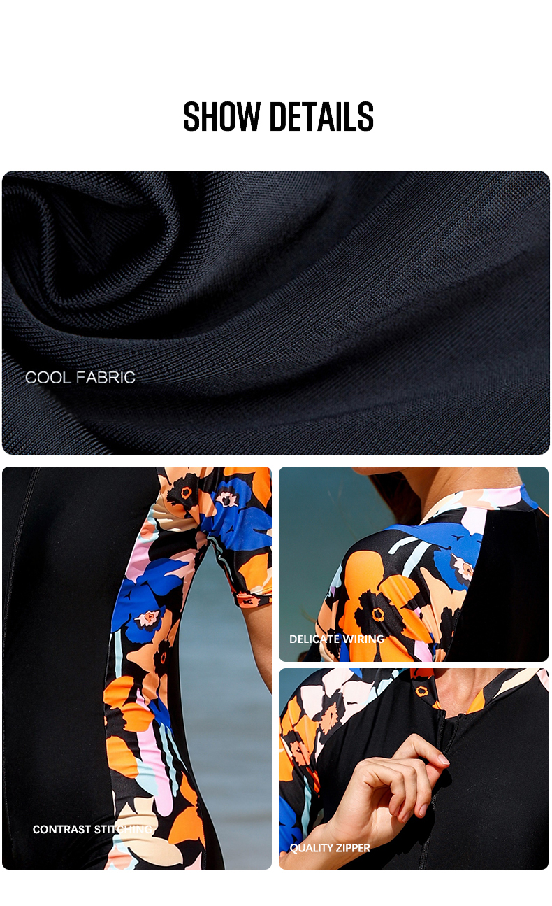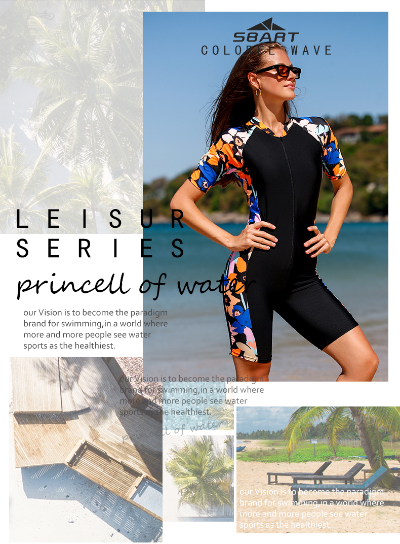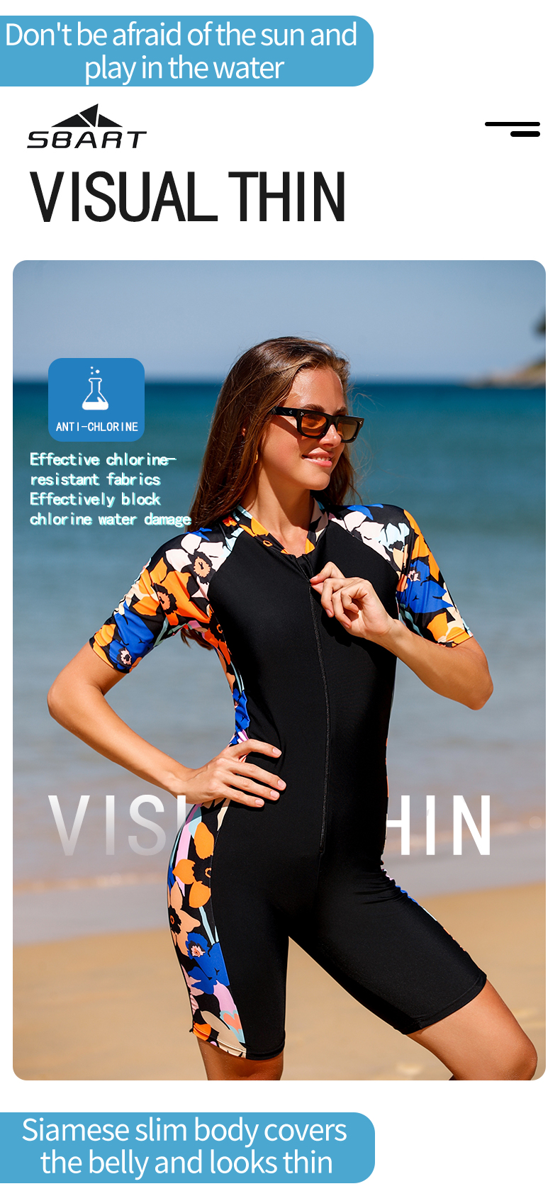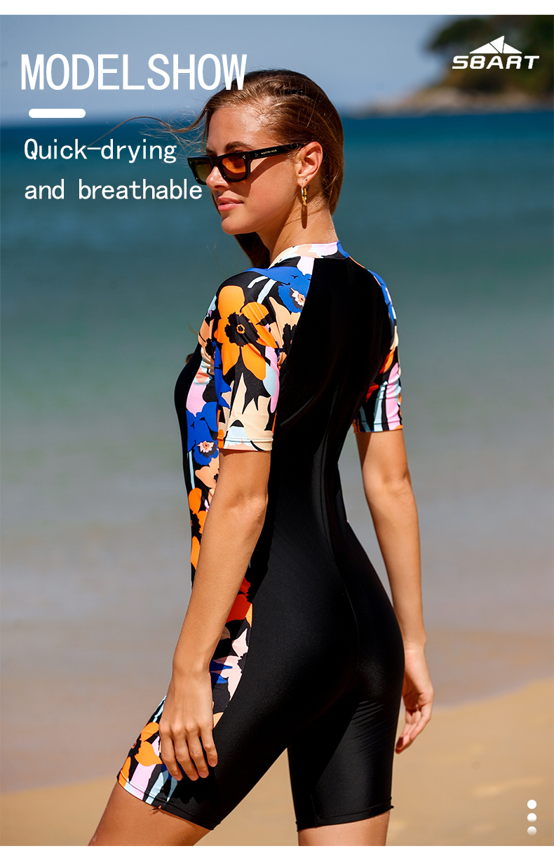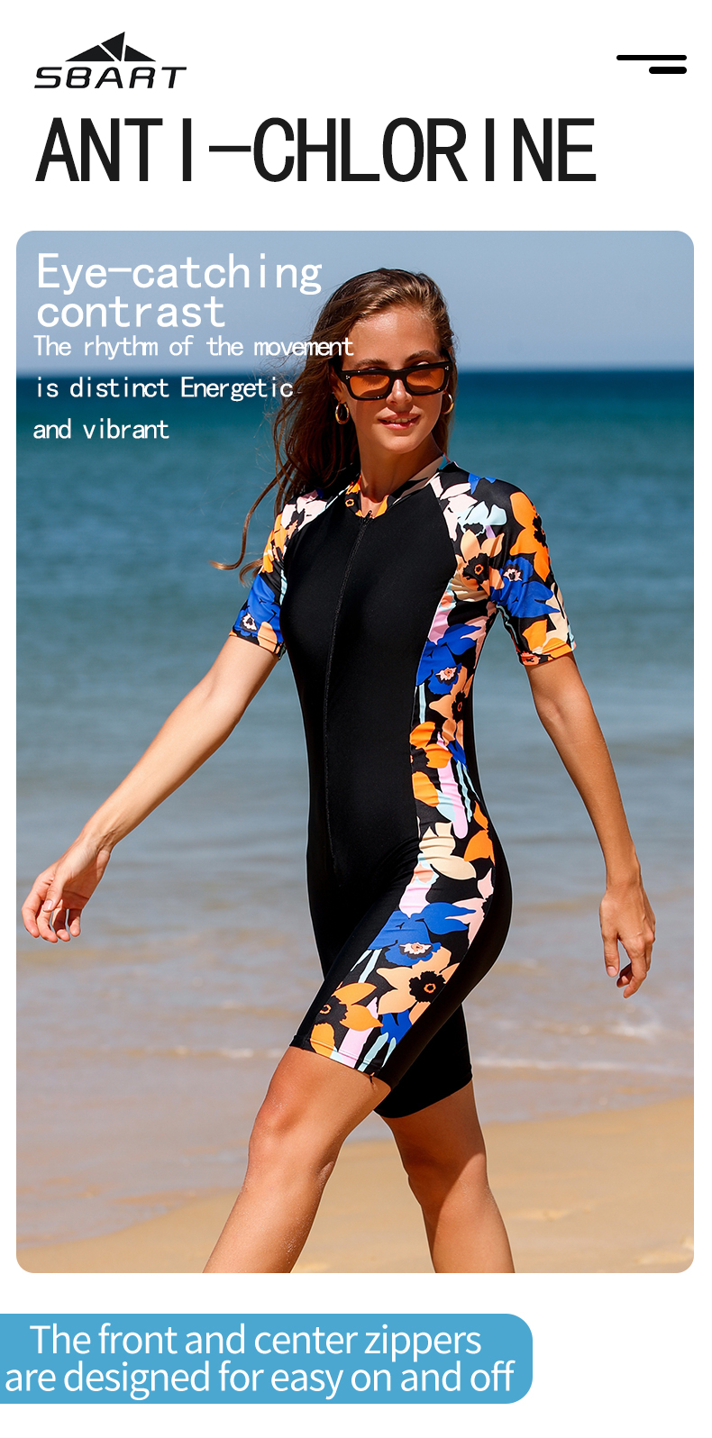 SBART One Piece Swimsuit For Women With Sun Protection Quick Dry High Elasticity Tight Fitting Short Sleeve Swimsuits